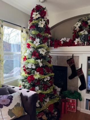 December has been a favorite time of the year for me since I was a young adult. I love the lights, the colors, the festivities, the decorations, the gatherings, and the changes of pace it brings. Everything! And oh yes, the decorating and entertaining. Nightly, we light candles and all the colorful lights. Love it all.